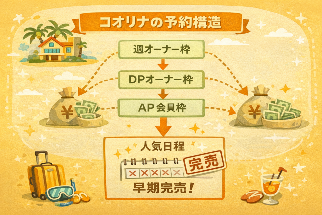 それぞれの契約形態ごとに予約枠が設けられているため、同じリゾートであっても予約条件は一律ではありません。