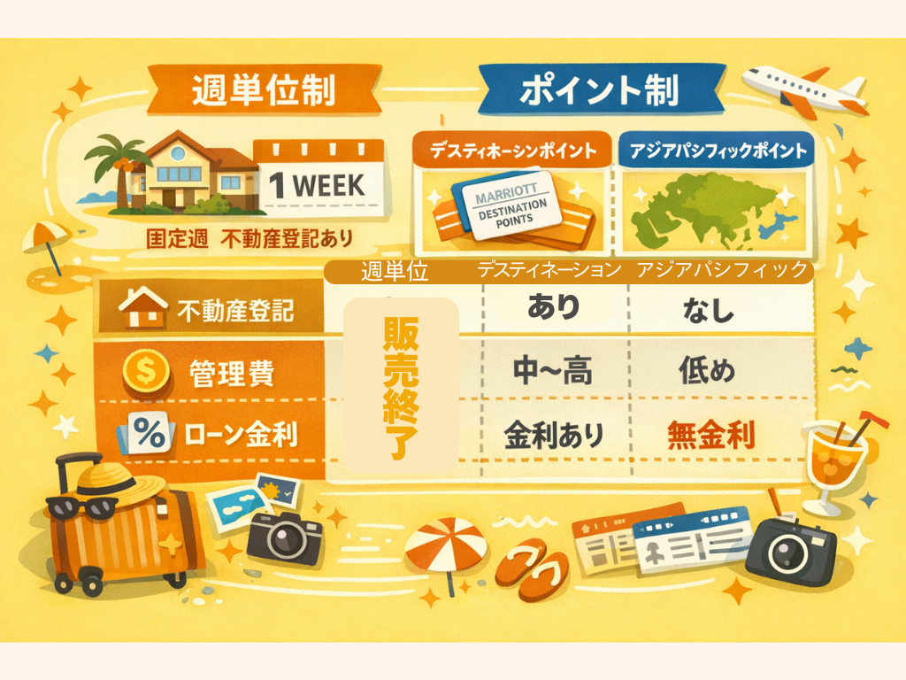 - 毎年発生する管理費は、一般的にデスティネーションポイント(ハワイ契約)の方が高い傾向あり。
